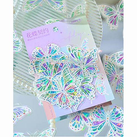 Shell Light Shining PET Sticker Rainbow Butterfly Die Cut Sticker PK20 para DIY Crafts Decor, fabricación de tarjetas, Scrapbooking, Journal