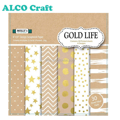 कस्टम मुद्रित 6x6 गोल्ड पन्नी स्क्रैपबुक डिजाइन पेपर पैड वुडफ्री डाय कार्ड और उपहार पैकेजिंग के लिए पत्र शैली